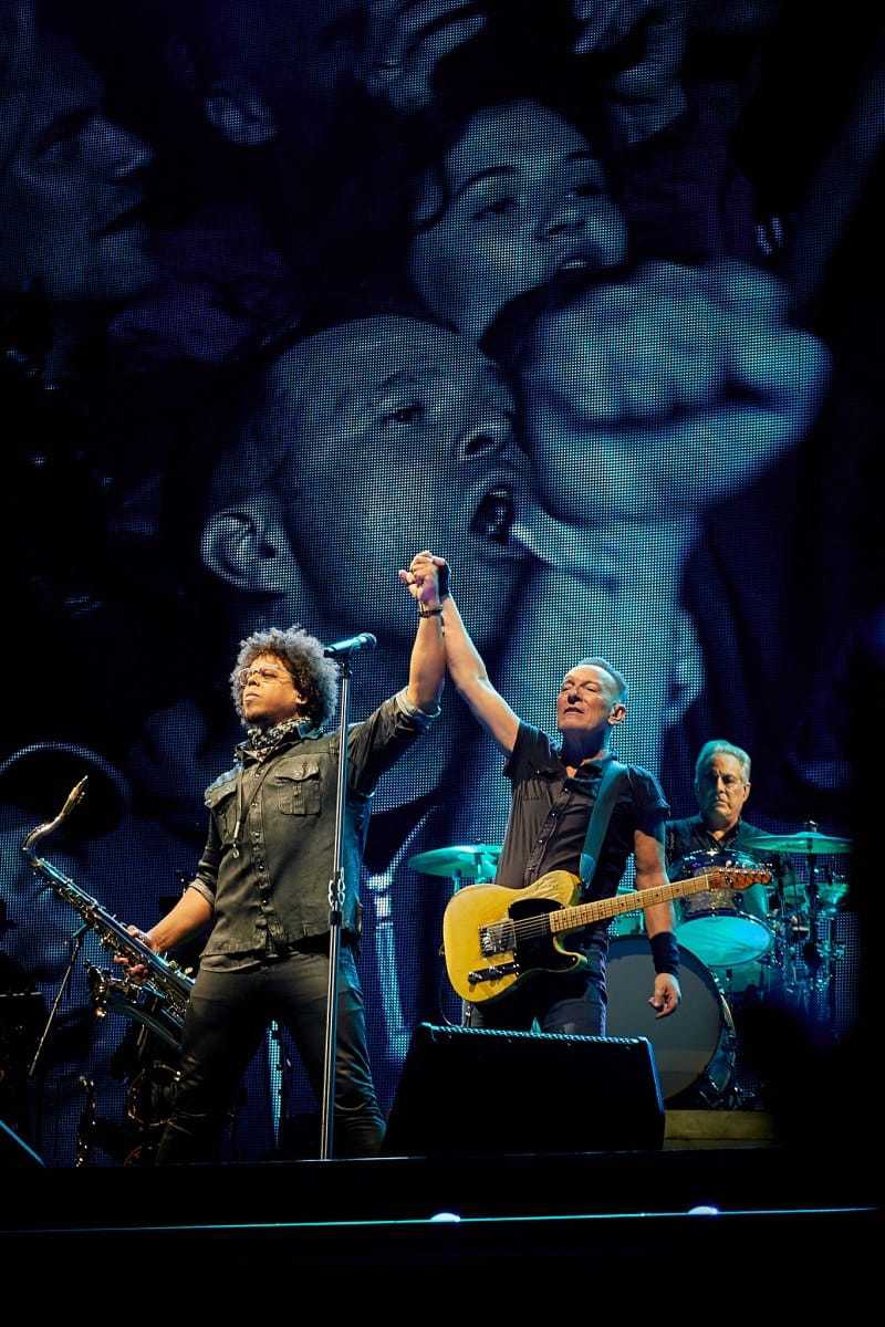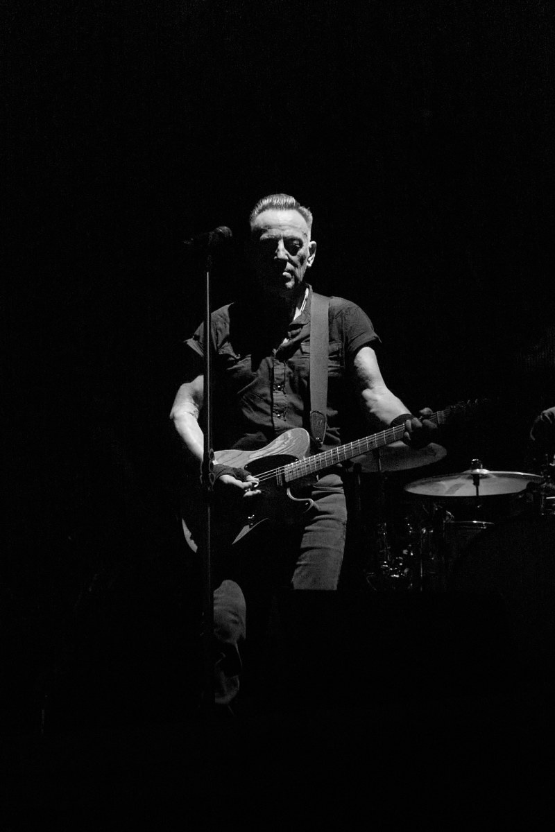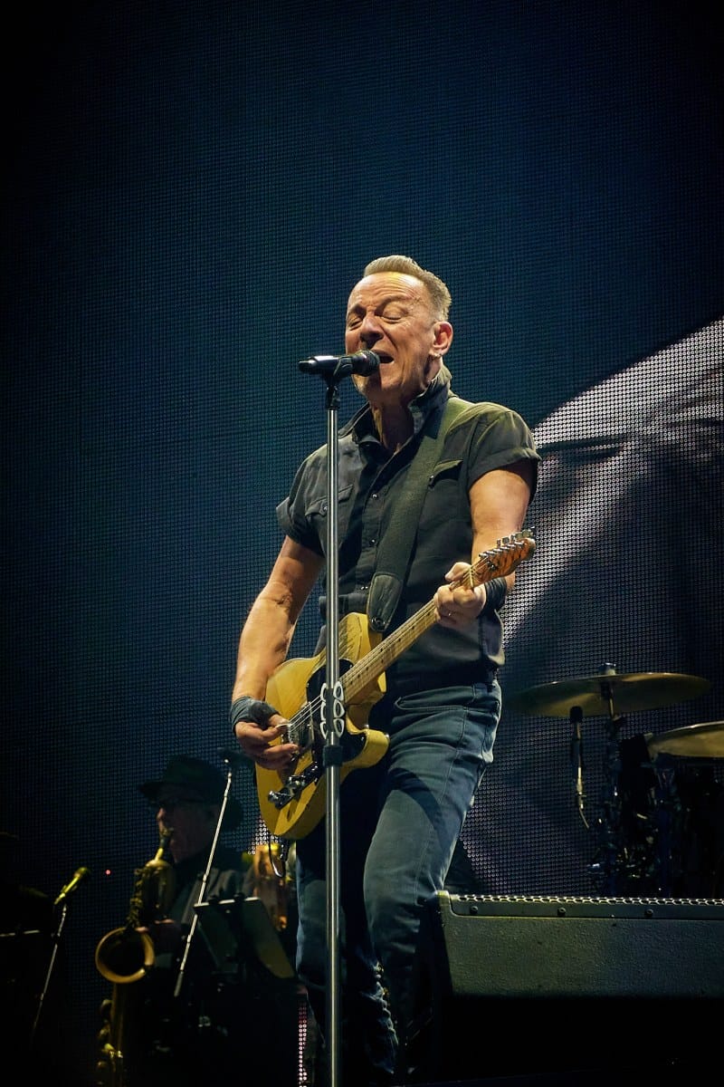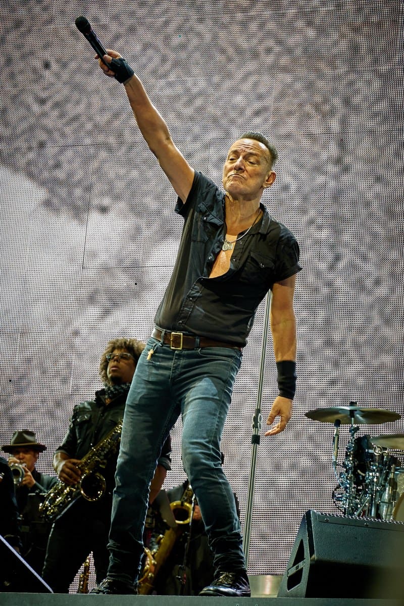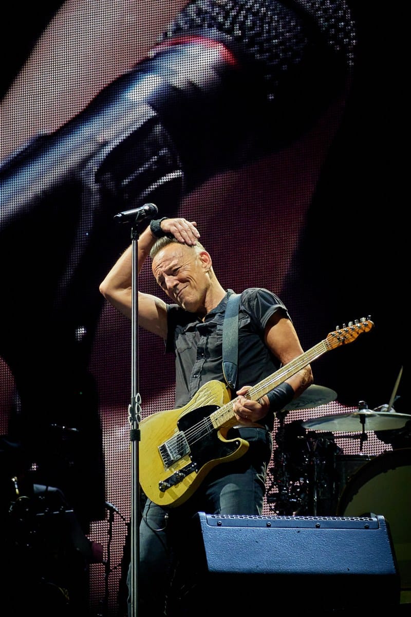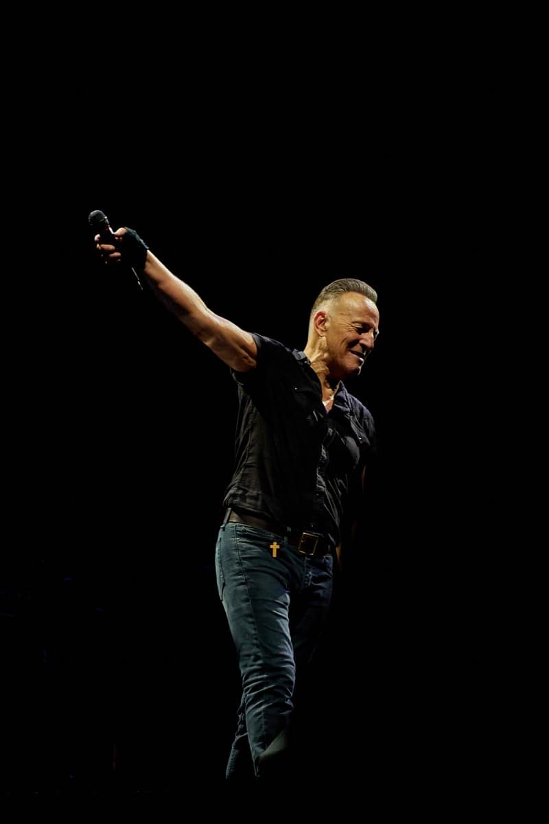 Sesión de fotografía durante el concierto de Bruce Springsteen en Barcelona el 30 de abril de 2023 con la icónica imagen de Bruce con el rosario que alguien del público le regaló colgado del bolsillo de su pantalón.